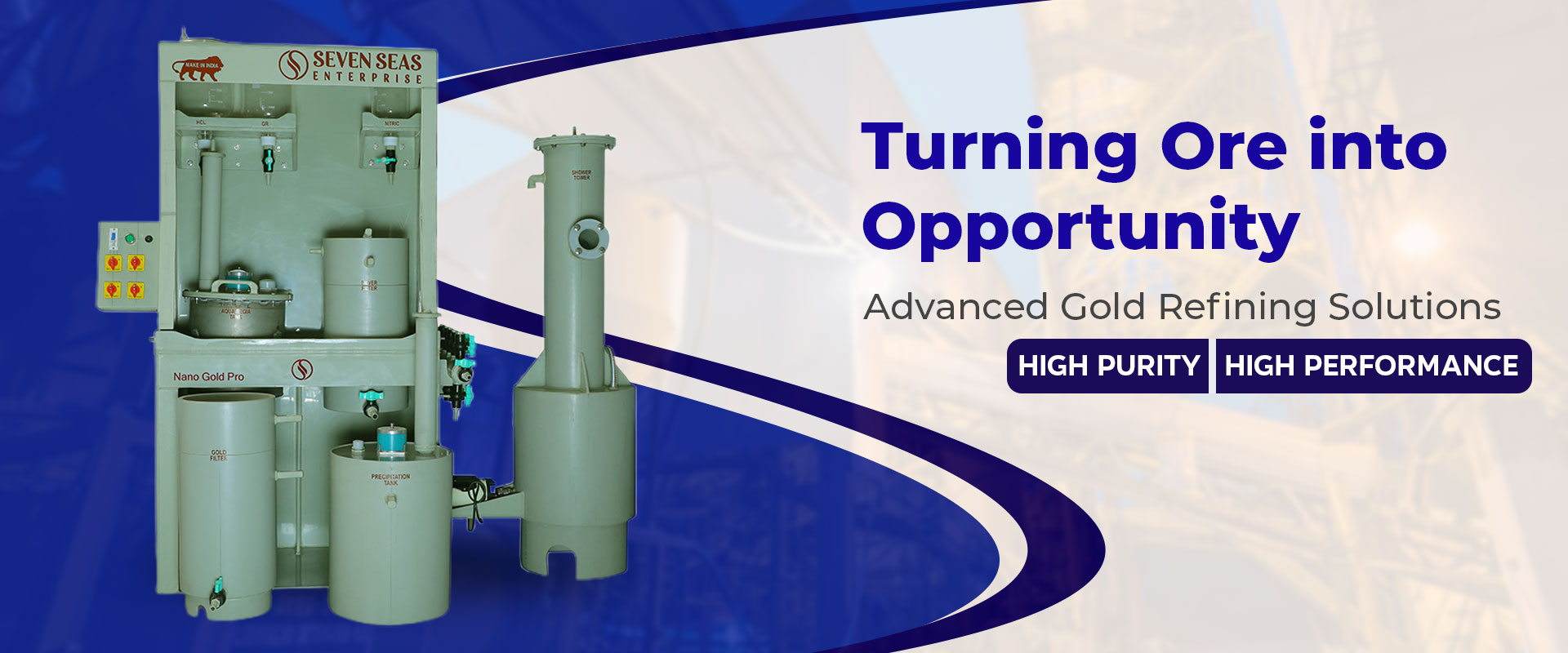 A system or setup designed for extracting pure gold from raw materials, scrap, or alloy. Seven Seas Enterprise offers high-performance gold refining plants that ensure precision and high purity output.